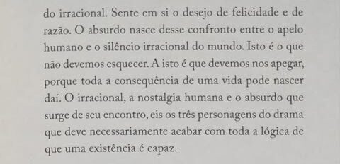 Vamos buscar um pequeno esclarecimento sobre o absurdo nas páginas de “O Mito de Sísifo”, abaixo: